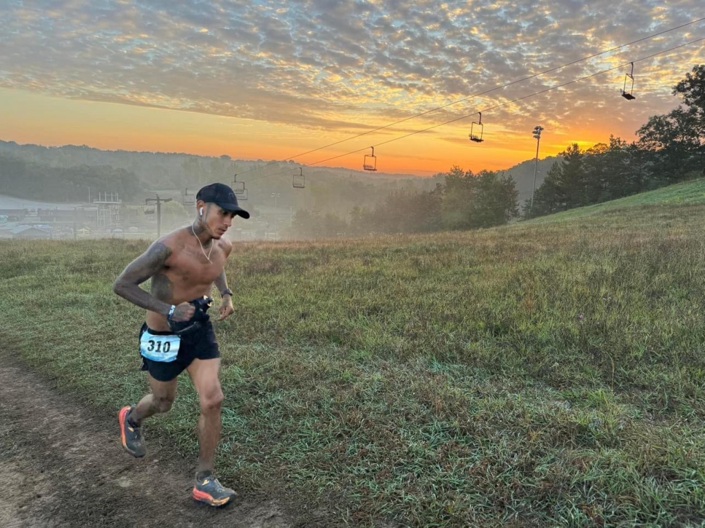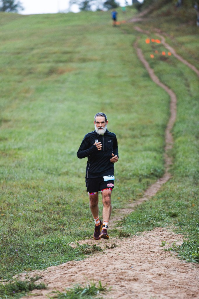 - Base Camp– 50 miles and over 14,500ft/14,500ft gain/loss. 76 “everesting” loops of .6 miles and two, 2 mile, trail loops on wooded single track that can be run at any time during the race. 35 hour cutoff.